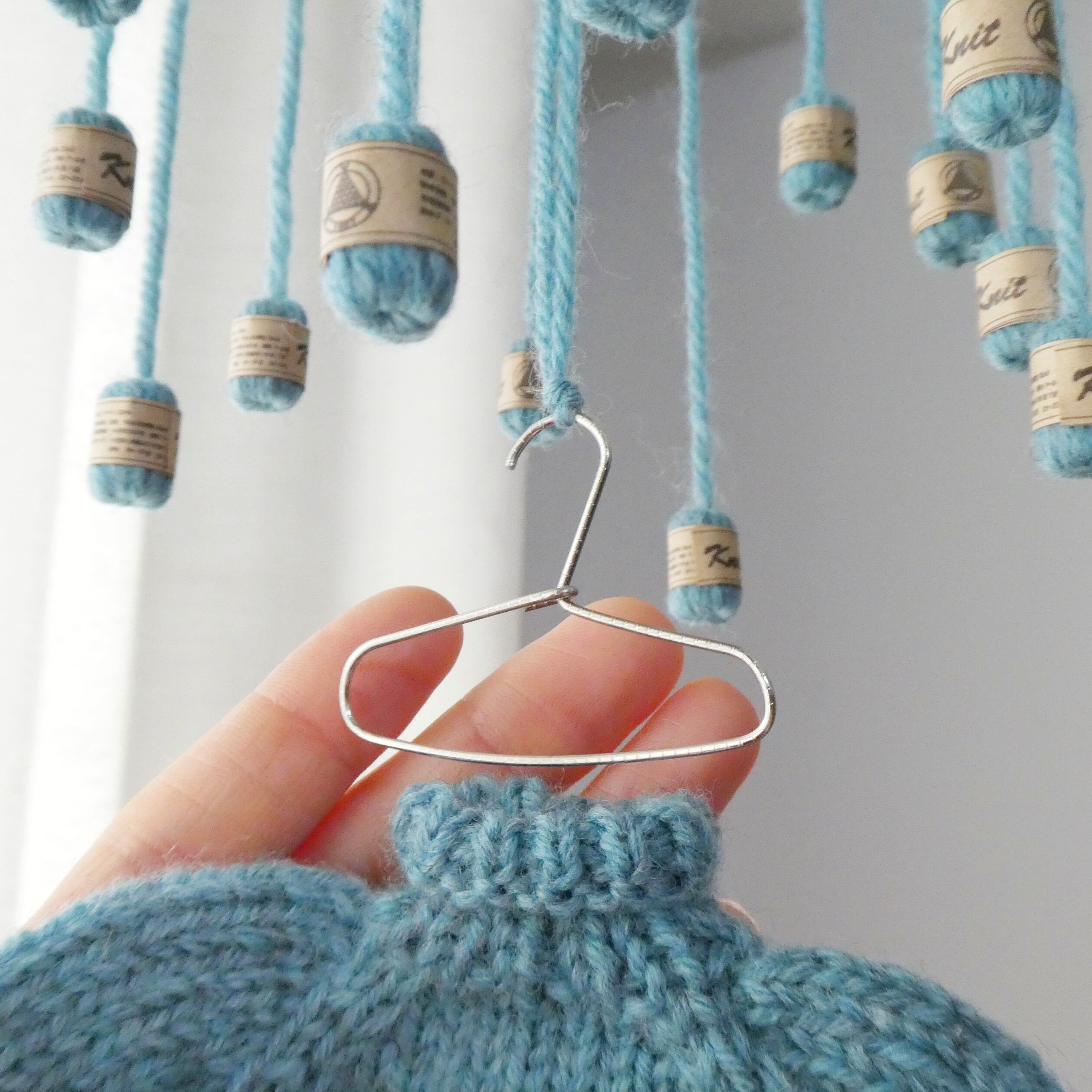 ※吊り糸はお好きな長さに結び、余った毛糸はカットしてご使用ください。