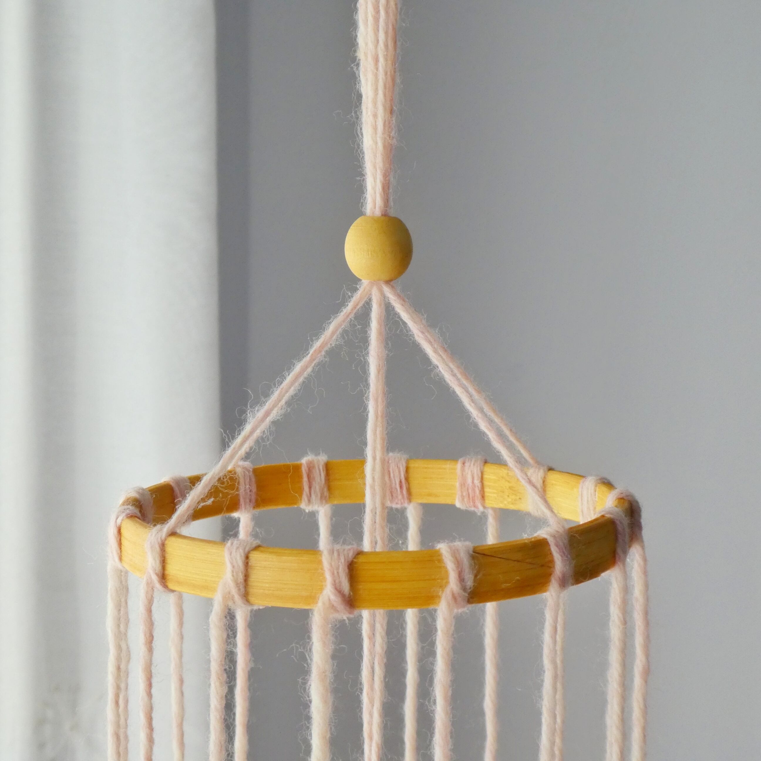 ※吊り糸はお好きな長さに結び、余った毛糸はカットしてご使用ください。