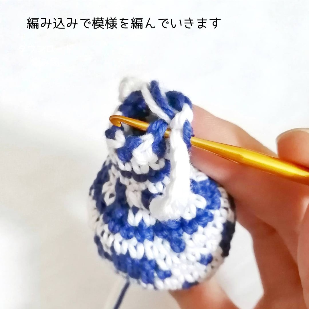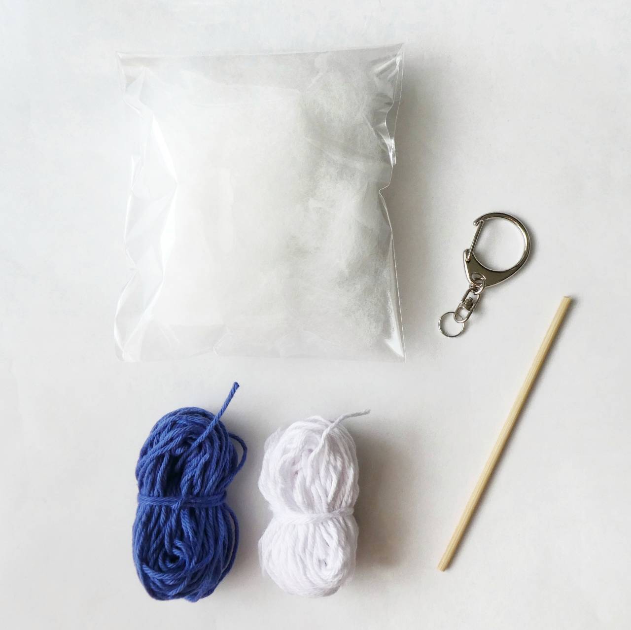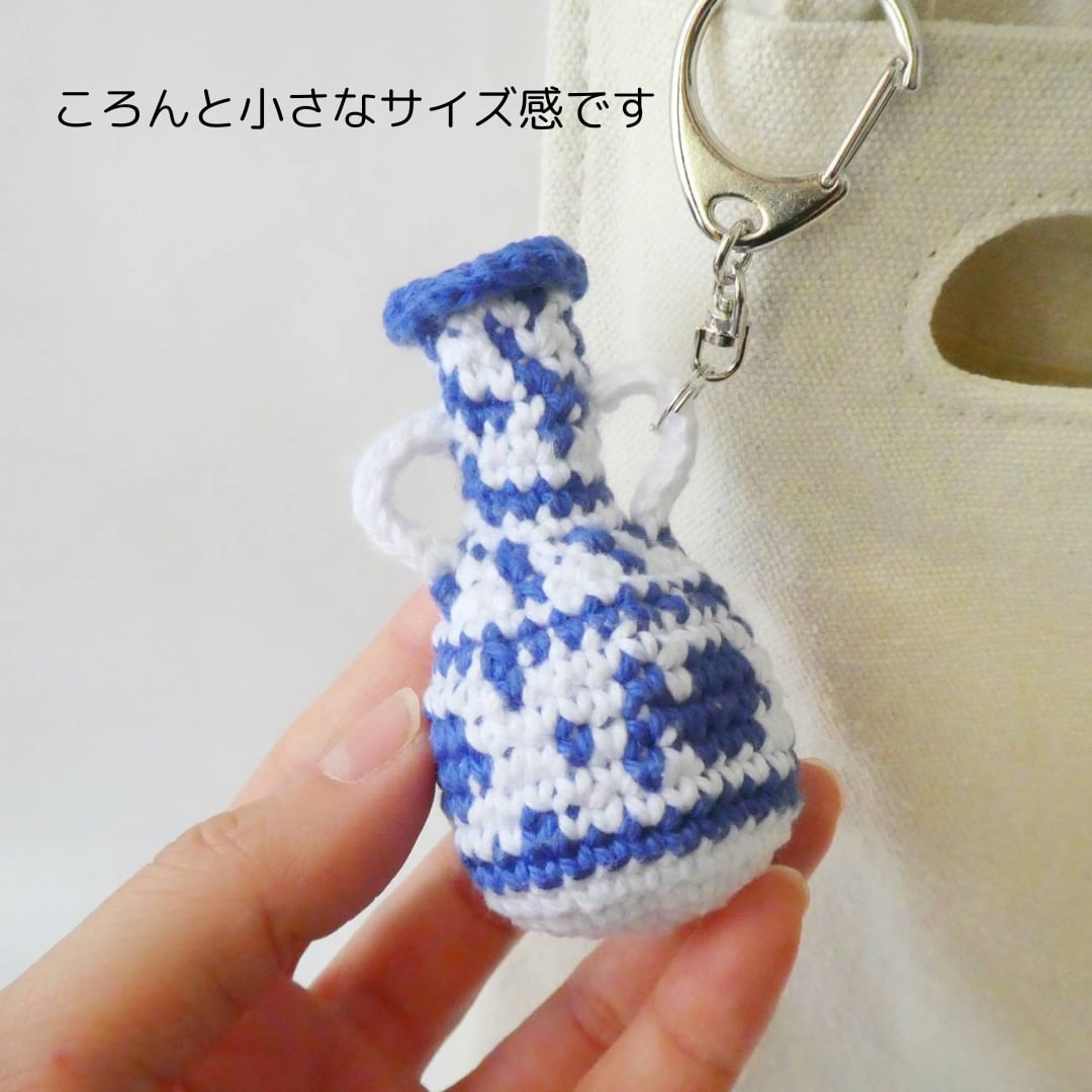 伝統的な陶磁器のような模様を、かぎ針編みで編んで楽しむあみぐるみキーホルダーのキットです。