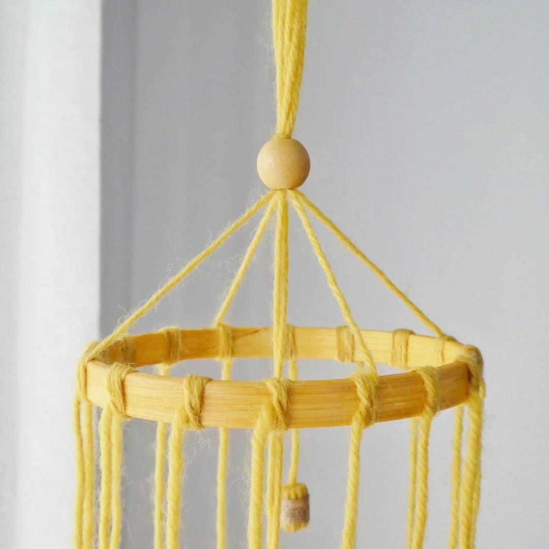 ※吊り糸はお好きな長さに結び、余った毛糸はカットしてご使用ください。