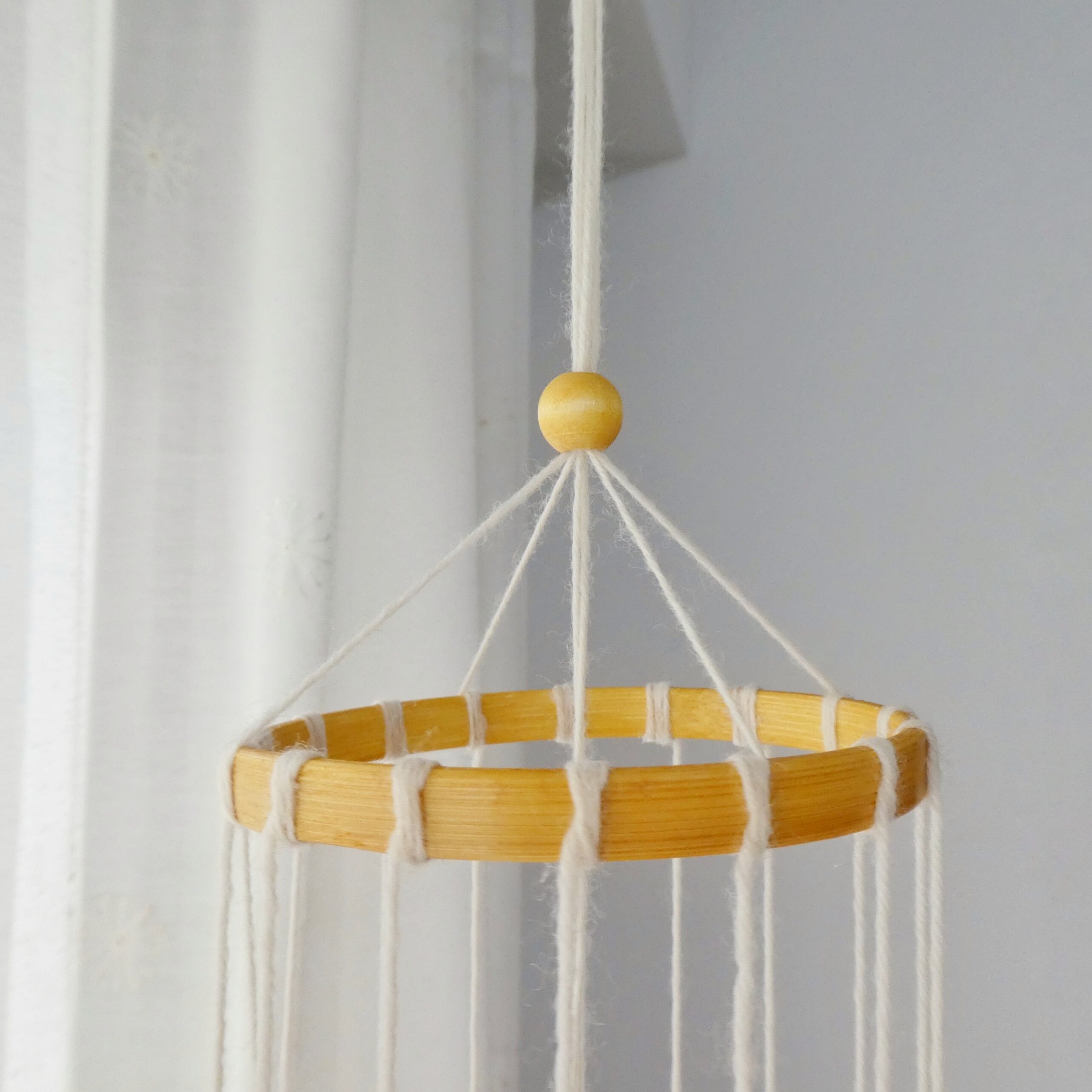 ※吊り糸はお好きな長さに結び、余った毛糸はカットしてご使用ください。