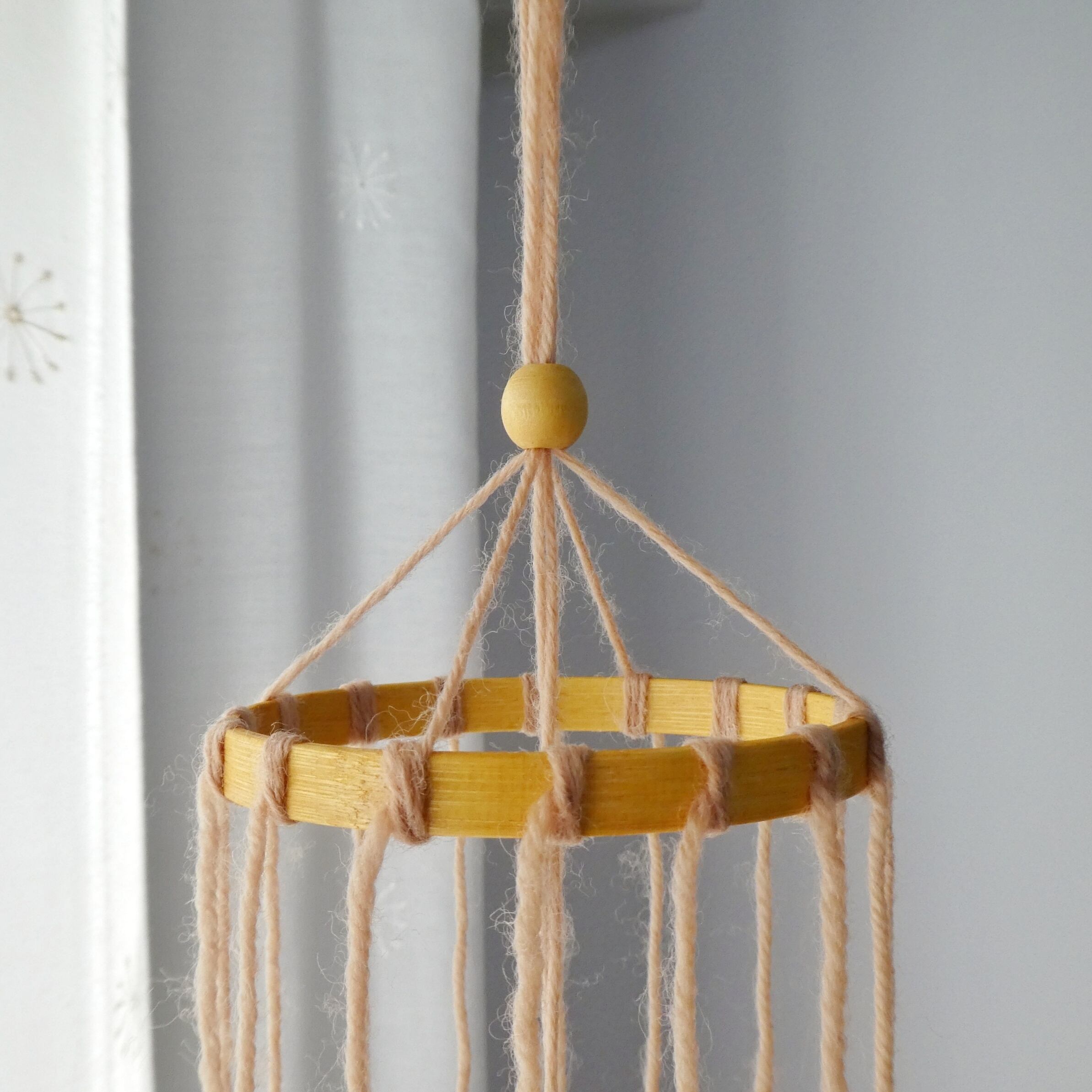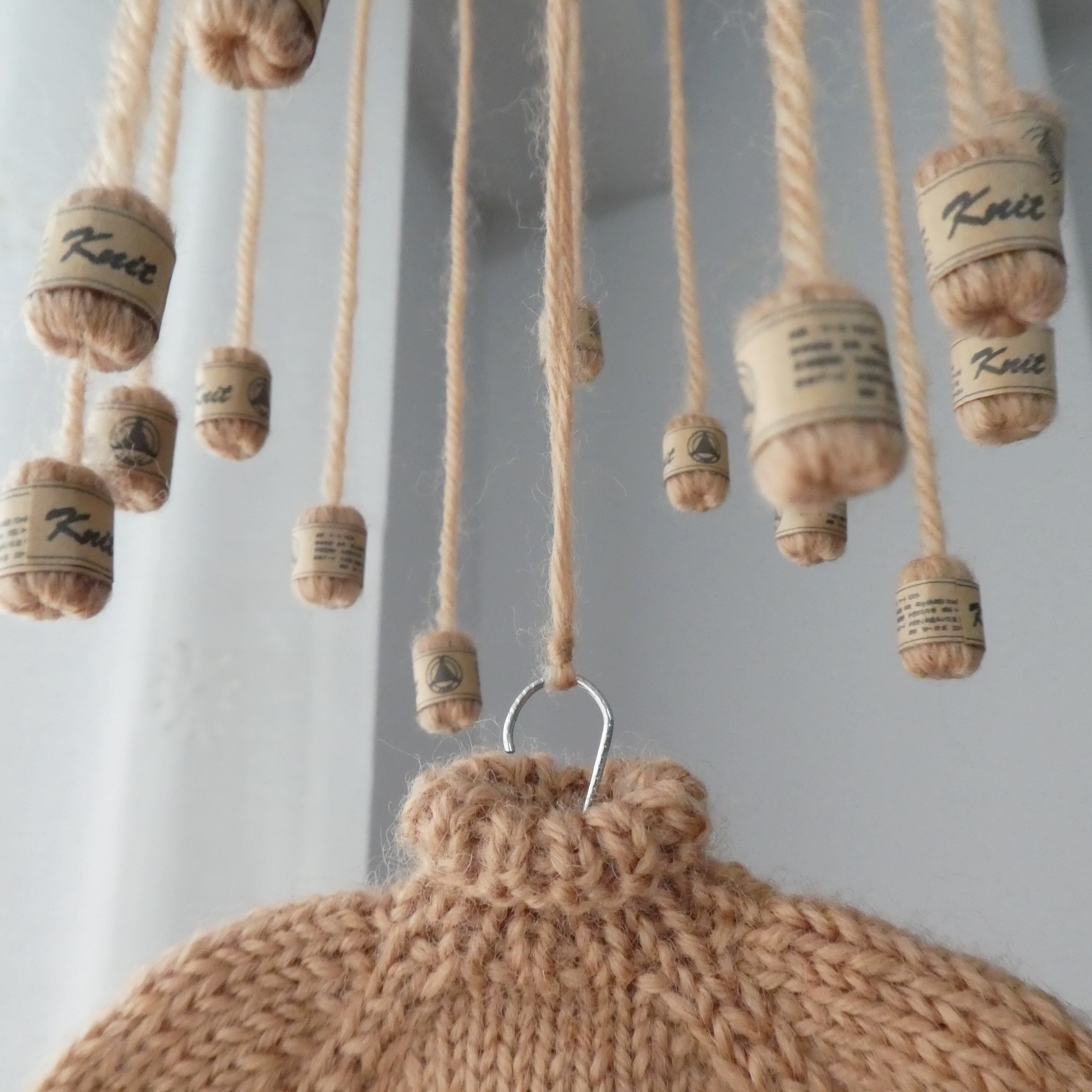 ※吊り糸はお好きな長さに結び、余った毛糸はカットしてご使用ください。
