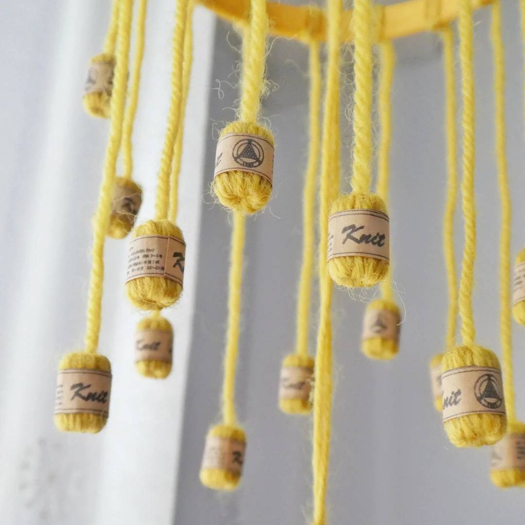 ※吊り糸はお好きな長さに結び、余った毛糸はカットしてご使用ください。