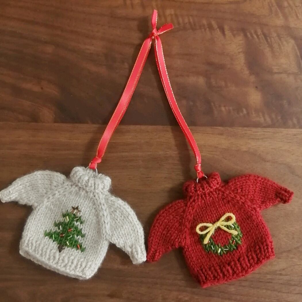 クリスマスオーナメント2個セット/ミニセーター/赤×アイボリー/クリスマスツリーとリース受注制作