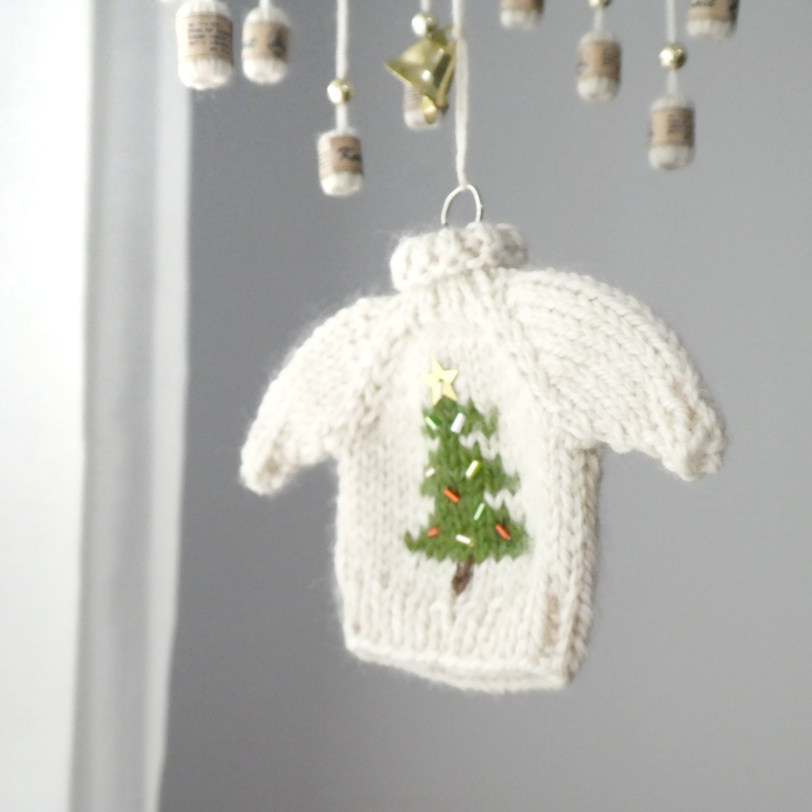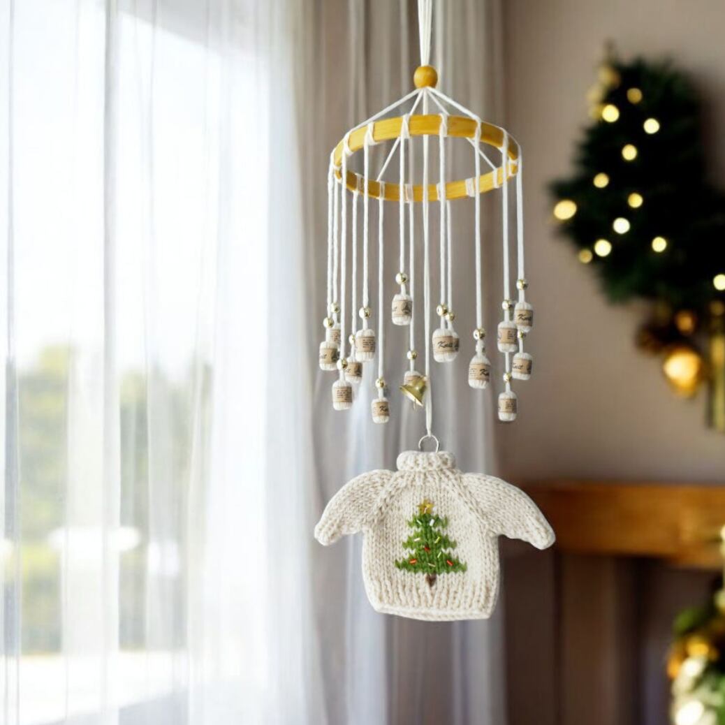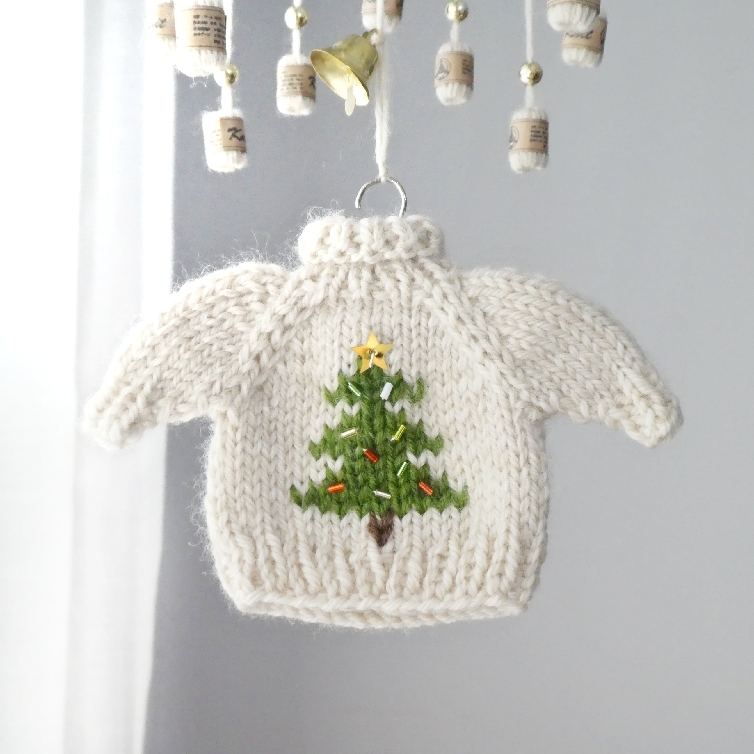クリスマスのニットのモビール/小さなセーターとミニチュア毛糸玉/クリスマスツリー/アイボリー – Knit Mobile: Christmas Mini Sweater & Yarn Balls