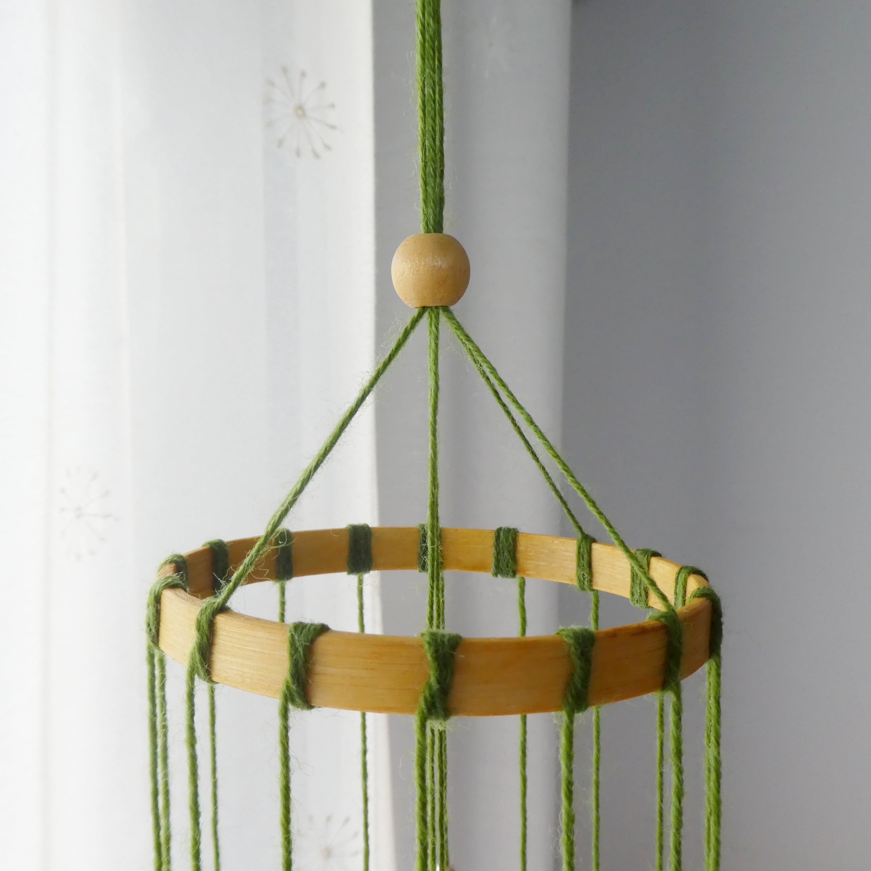 ※吊り糸はお好きな長さに結び、余った毛糸はカットしてご使用ください。
