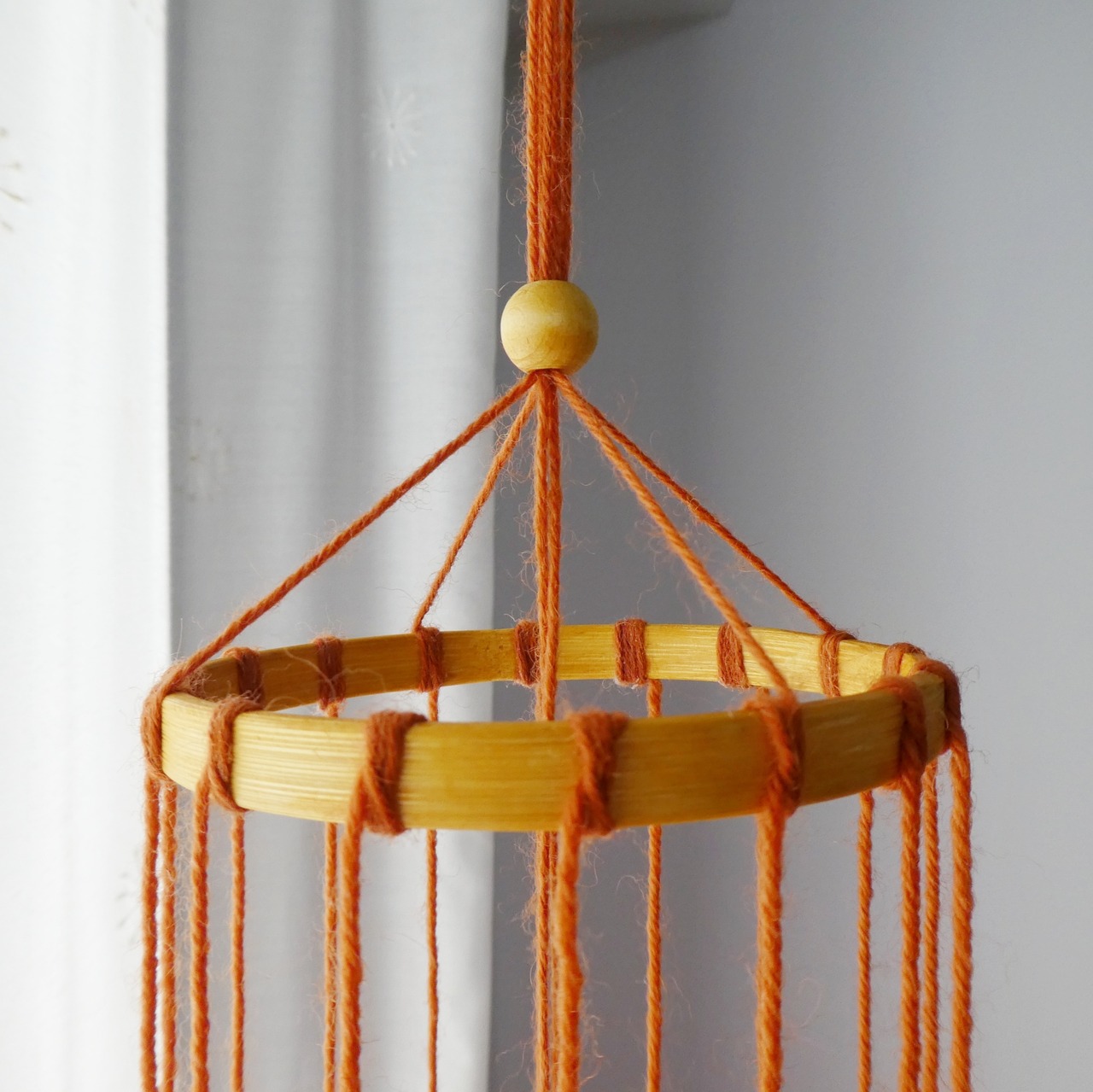 ※吊り糸はお好きな長さに結び、余った毛糸はカットしてご使用ください。