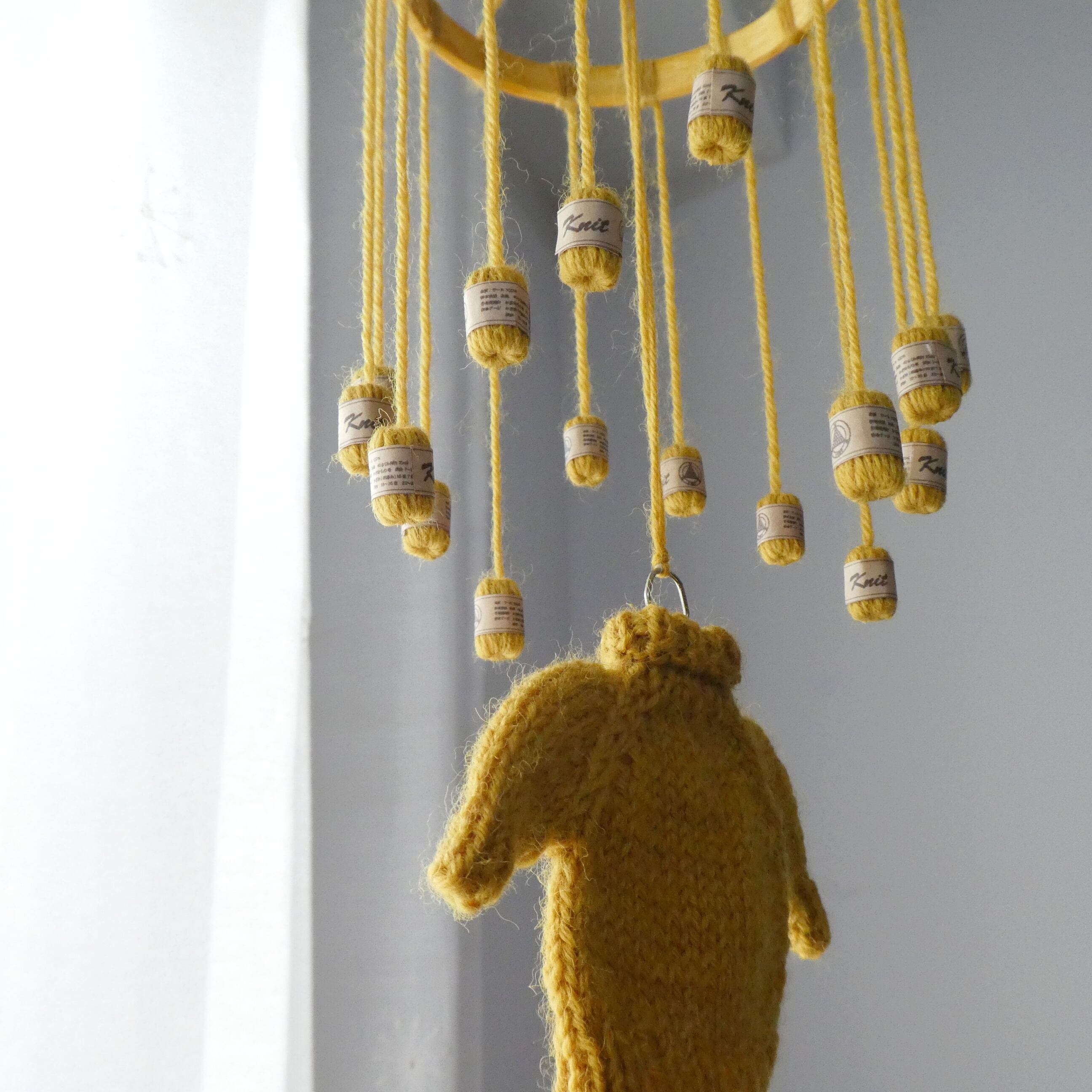 ニットのモビール ―ナチュラル―/小さなセーターとミニチュア毛糸玉/イエロー/受注制作 -Knit Mobile: Mini Sweater & Yarn Balls