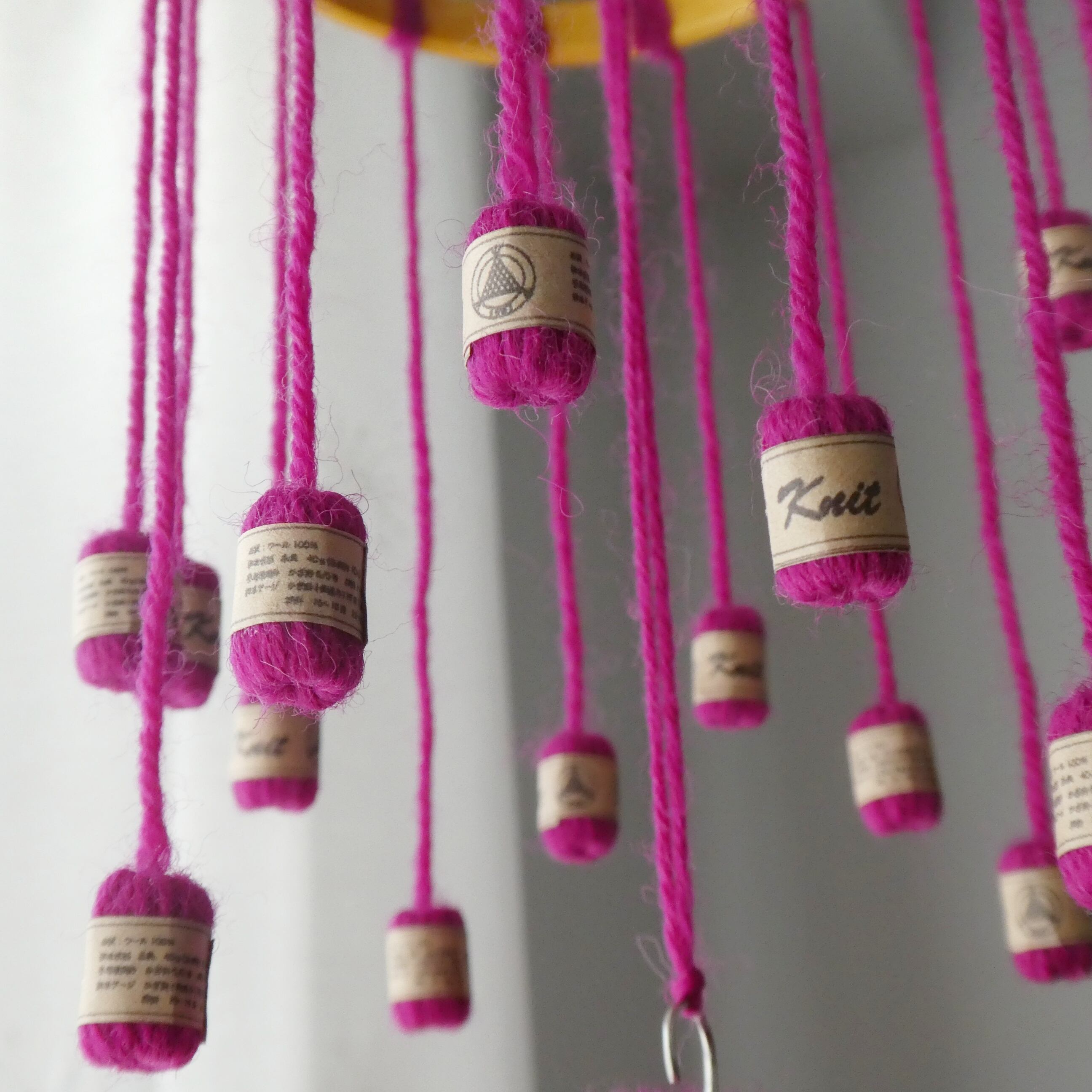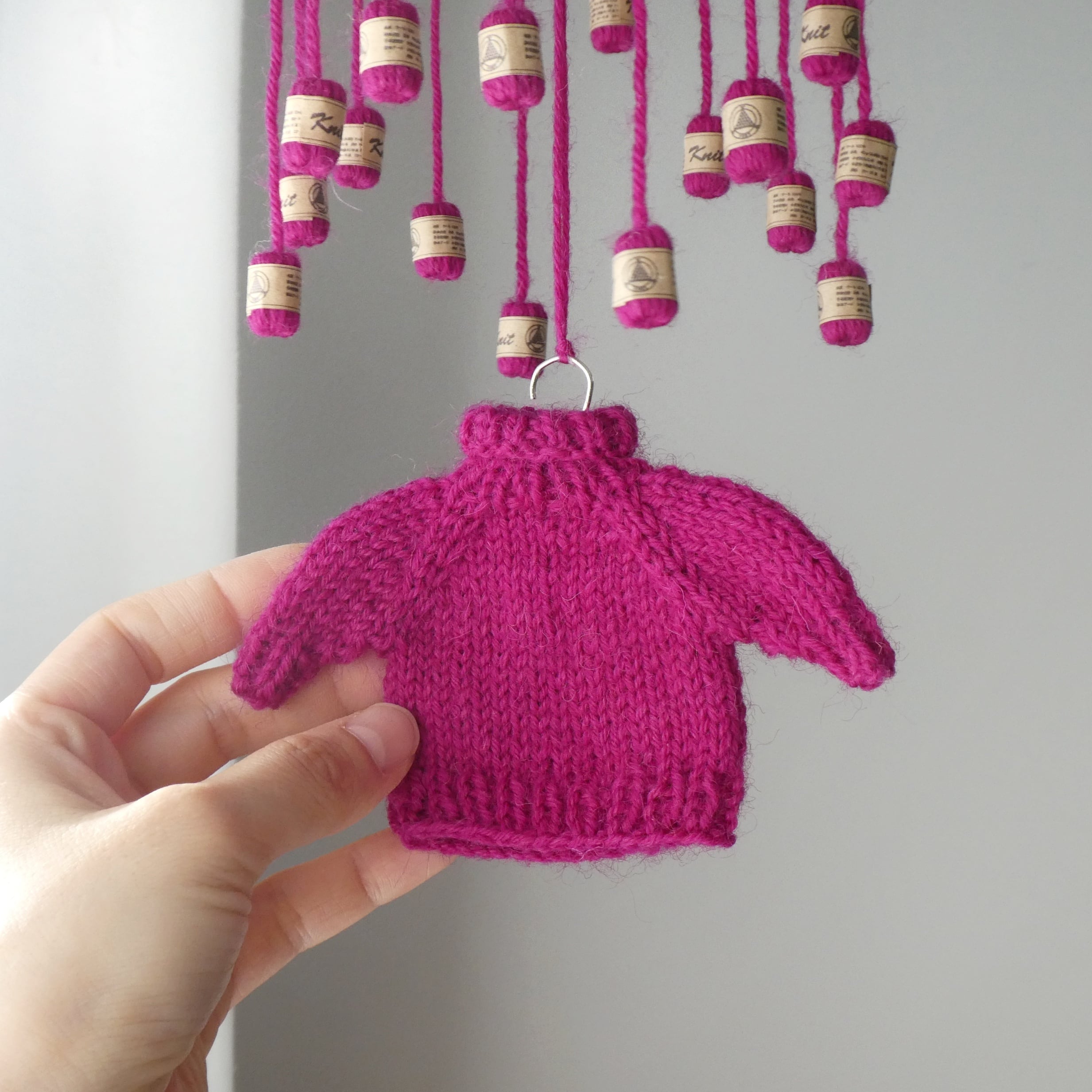 ニットのモビール ―ナチュラル―/小さなセーターとミニチュア毛糸玉/マゼンタ/受注制作 -Knit Mobile: Mini Sweater & Yarn Balls
